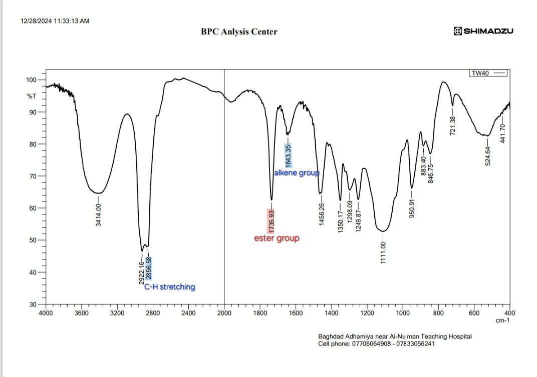 Fig. 15: Fourier transform infrared spectroscopy (FTIR) of tween 40