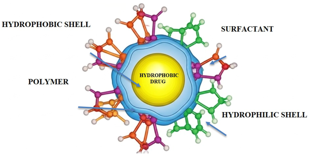 The solubilizing of poorly water-soluble drugs is due to the hydrophobic cavity of mixed micelles. Calculation of DL% and EE% depends on the polymer-drug energy compatibility, core size, and molecular match. Use of TPGS and lipophilic co-surfactants (e. g., tocopherol, cholesterol, etc.) can lead to an increase in core volume, leading to an EE% up to>90% for bromhexine HCl and amentoflavone as lipophilic drugs [46].