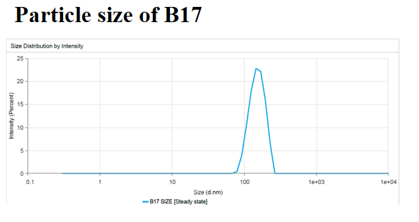 Fig. 6: Size distribution of redispersed CC solid-lipid nanoparticles, note-dispersibility of nanoparticles, which shows stability of nanoparticles in batch 17