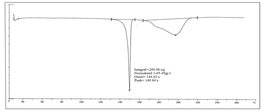 Fig. 4: Thermal analysis for the optimized CC-SLNs, Note-Thermal analysisshows melting point of SLN loaded patch peak was generated at 149.84 °C