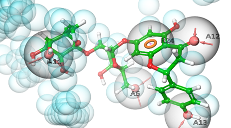 The Schrodinger software Phase application used a receptor-based pharmacophore method that deduced interactions from PDB data, including charge transfer, hydrogen bonding and hydrophobic areas in the macromolecular environment, to produce pharmacophore models [45-46]. This technique outlines the spatial configurations of functional groups essential to biological activity. Understanding the necessary elements required for ligand binding and biological activity is made more accessible with the aid of this pharmacophore model. This method assesses the key pharmacophoric characteristics of the ligands that give rise to bioactivity. Pharmacophore modelling was done for the most stable complex DQ5/6O4W found from MD simulation results.