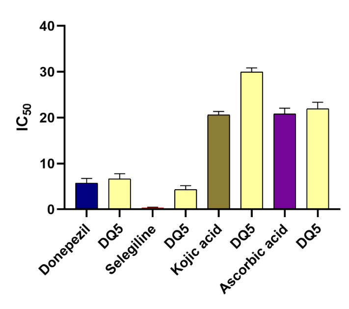 Acetylcholinesterase, MAO-B, Tyrosinase inhibition test and hydrogen peroxide free radical scavenging effects of DQ5 (naringin)