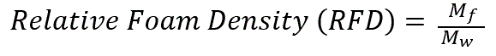 Relative foam density (RFD) was measured by placing water as the reference standard. The relative foam density was measured using the equation: