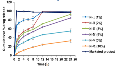 Fig. 8: In vitro drug release profile of capsule filled with N-Ⅳ batch. Data plotted as mean ±SD (n=3) |