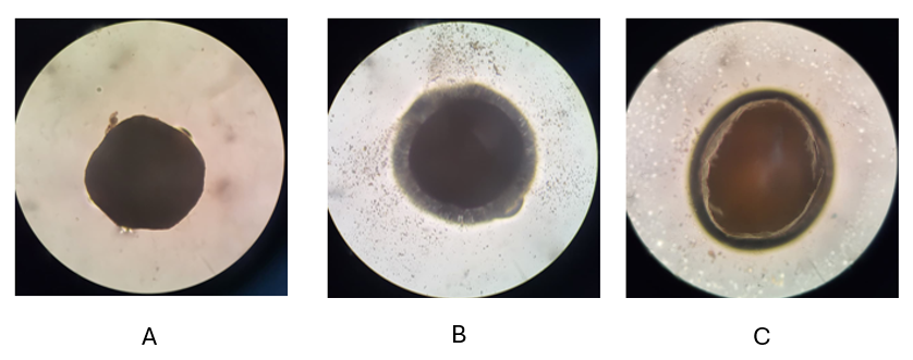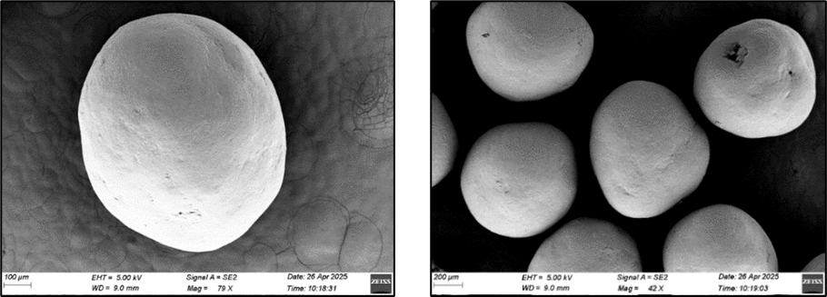 Effervescent layering was employed using a modified parameter which, was set to accommodate the unique properties of effervescent components. While maintaining the same temperature profile (35 °C inlet), higher atomization pressures (0.8-1.3 MPa) were used to achieve finer droplet formation. Fluidization pressure was also elevated (0.11-0.13 MPa) to maintain adequate particle mobility and prevent agglomeration. These adjustments were critical in preserving the effervescent functionality while achieving a defect-free layer.
