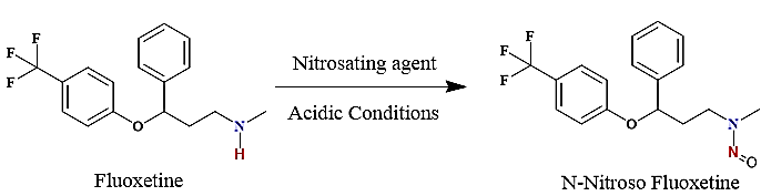 Fig. 2: The mechanism for the formation of N-Nitroso fluoxetine from fluoxetine