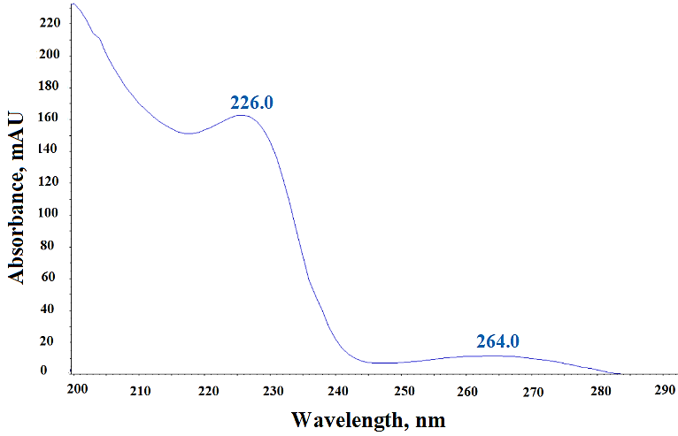 Fig. 4a: PDA Spectrum of fluoxetine API at concentration 0.5 mg/ml in methanol