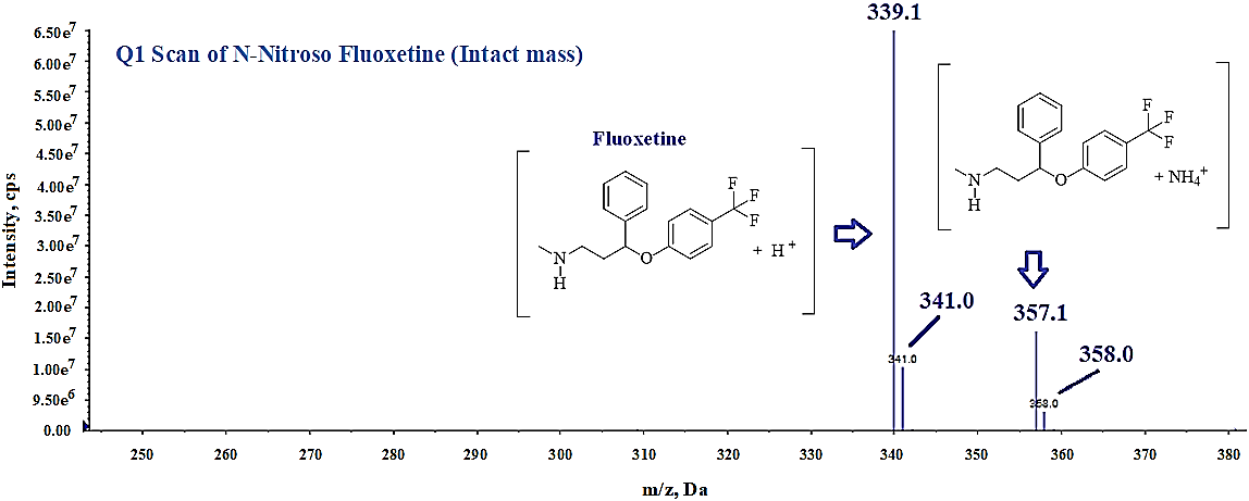 Fig. 5: Intact mass spectrum (Q1 MS) of N-Nitroso fluoxetine