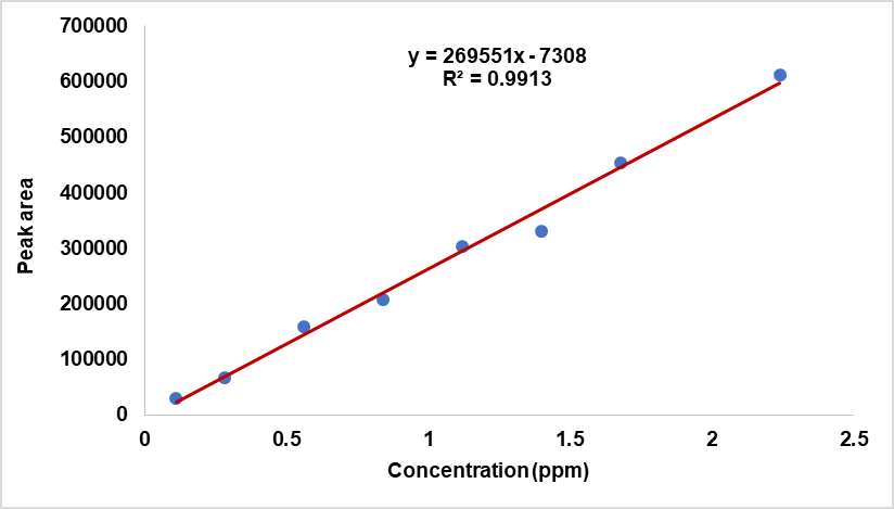 | Linearity level | Concentration (ppm) | Area | Correlation coefficient (R2) |