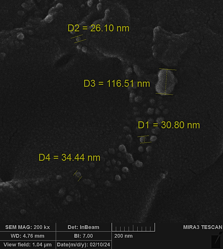CC nanoparticles of selected formula was tested by Field emission scanning electron microscope (MIRA3 TESCAN), it was established by dusting of dried powder directly on carbon tape, then taken image by altered magnification powers.