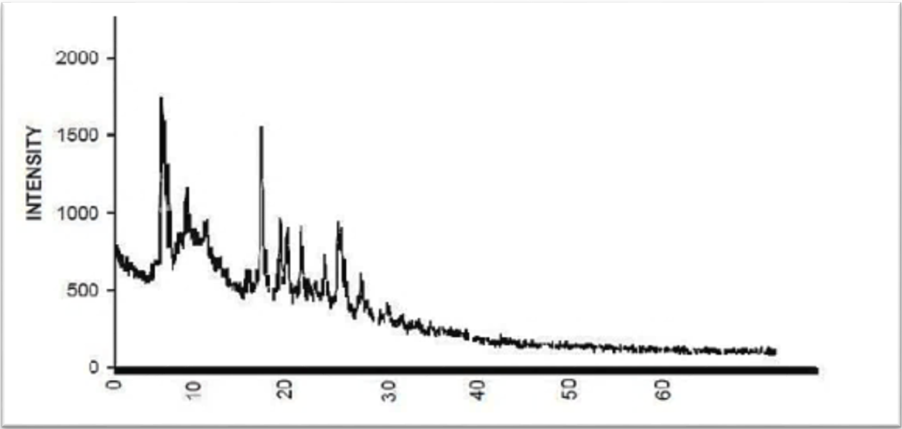 The X-ray diffraction was applied to evaluate the molecular and atomic structure; it can be used to prove the crystallinity of nanoparticles so this test applied to check whether formula is crystalline or amorphous. The study was recognized by powder X-ray diffraction at 2θ.