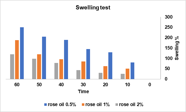 Fig. 2: Swelling test for different concentration of rose oil, values are mean (n = 3) [19]