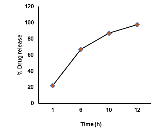 The in vitro drug release study of the optimized formulation was conducted (fig. 6) and compared with the predicted average percentage of drug release from the CCD (table 12).