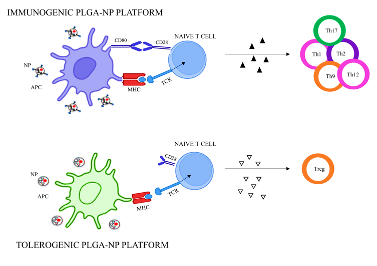 Fig. 1: Immunogenic and tolerogenic poly(lactic-co-glycolic acid) PLGA nanoparticle (Source: Biorender)