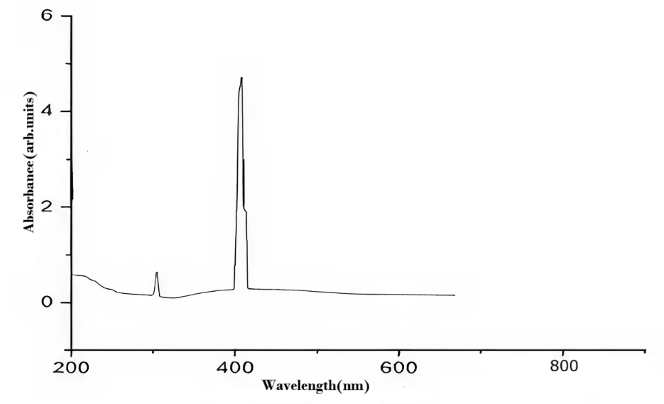 The SPR band of Ag-NPs was indicated by a peak in UV-visible absorption spectra at 407 nm. This revealed the existence and behavior of Ag-NPs in the sample, enabling thorough characterization of the nanoparticles and offering important insights into their optical characteristics. In addition to confirming the presence of Ag-NPs, the accurate measurement and characterization of this SPR band at 407 nm provided a better understanding of their behavior and interactions in the solution. The SPR band at 407 nm using UV-visible spectroscopy highlighted the value of precise and accurate analytical methods in the study of nanomaterials such as silver nanoparticles, illuminating their fascinating optical phenomena. Fig. 2 displays the synthesized Ag-NPs’ UV-vis spectrum [25].