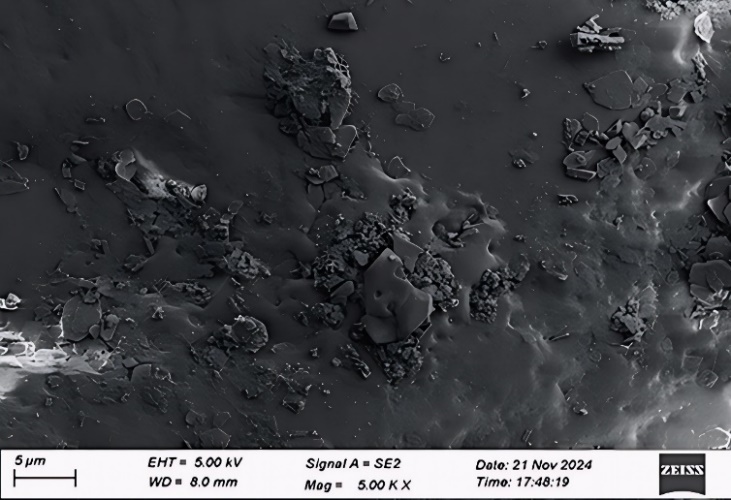 FESEM reveals a pattern of agglomeration in the synthesized Ag-NPs particles, suggesting interconnected particles during the synthesis process. This insight into particle formation allows for a better understanding of their properties and potential applications. The images provided valuable information for further analysis and interpretation of the agglomerated state of Ag-NPs. FESEM of Ag-NPs is given in fig. 8.