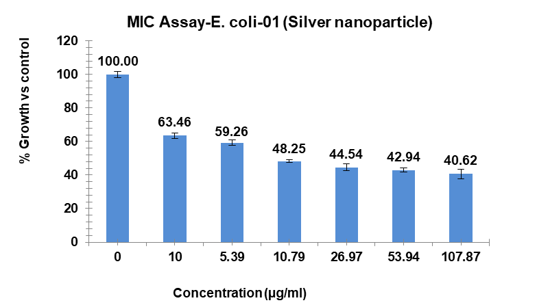 Fig. 9: MIC assay of (E. coli) of Ag-NPs. Results are presented as mean±SD, n=3