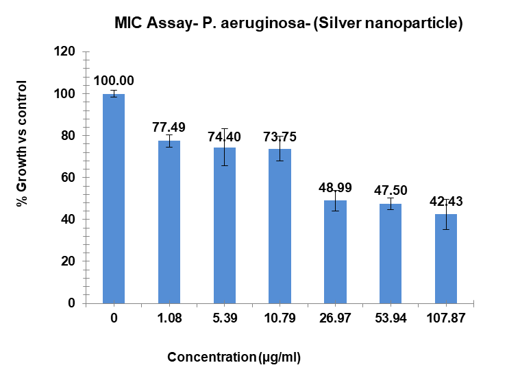 Fig. 12: MIC assay of (P. aeruginosa) of Ag-NPs. Results are presented as mean±SD, n=3