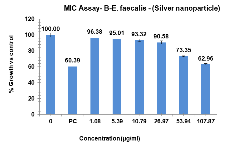 Fig. 15: MIC assay of (E. faecalis) of Ag-NPs, results are presented as mean±SD, n=3