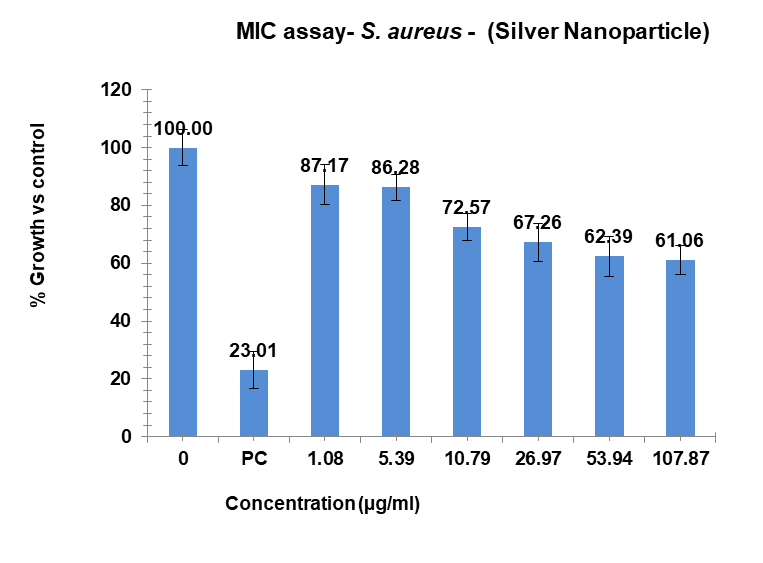 Fig. 18: MIC assay of (S. aureus) of Ag-NPs. Results are presented as mean±SD, n=3