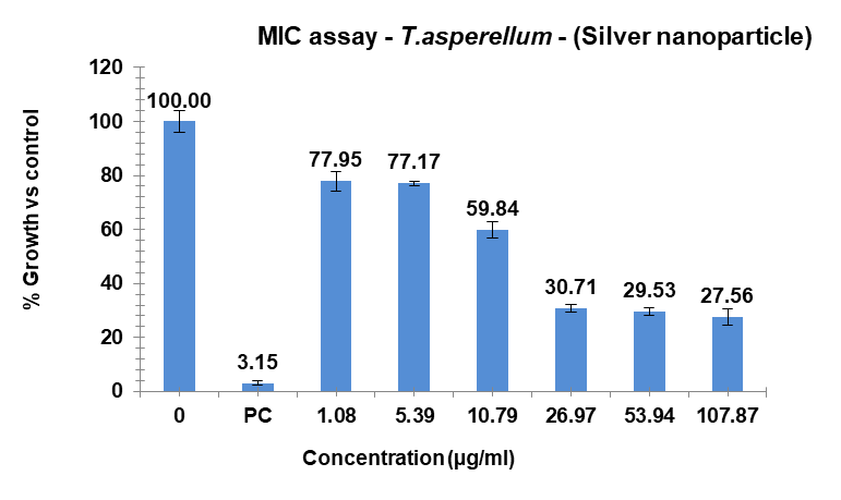 Fig. 21: MIC assay of (T. asperellum) of Ag-NPs. Results are presented as mean±SD, n=3