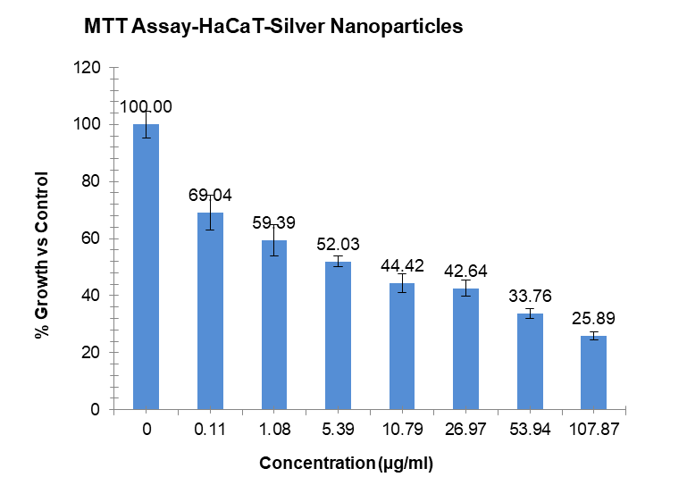 Fig. 24: % Growth vs control and concentration (µg/ml) of Ag-NPs. Results are presented as mean±SD, n=3