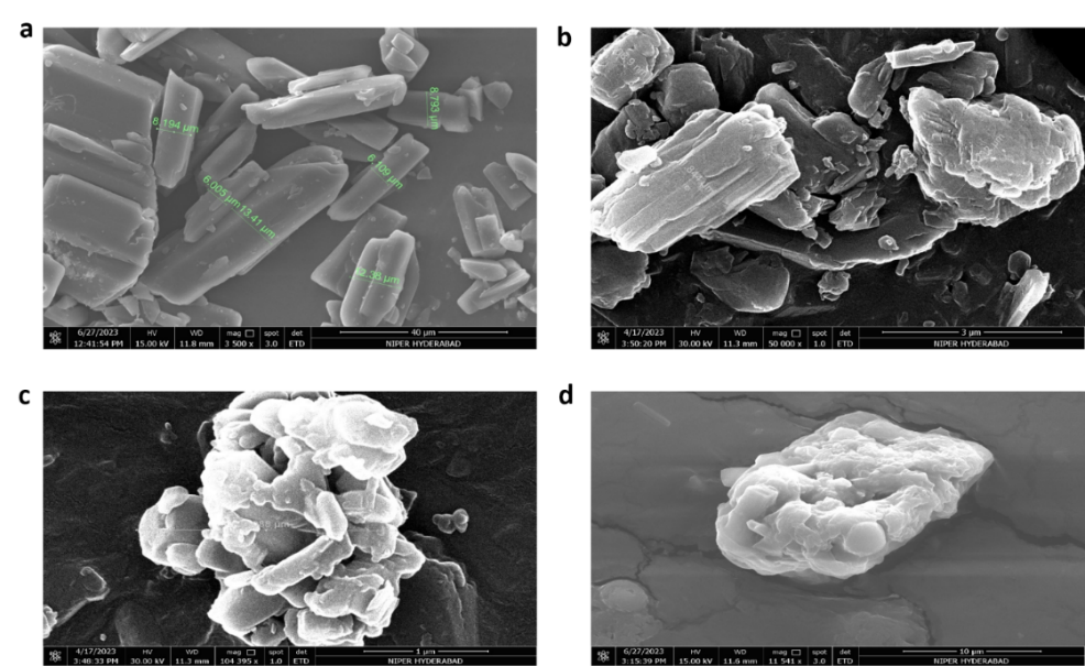 Scanning Electron Microscopy (SEM) was employed to study the surface morphology and shape of the samples using a scanning electron microscope (FEI Quanta FEG 250, Netherlands). Samples were mounted on aluminum studs with double-sided adhesive tape and gold sputter-coated prior to analysis [6].