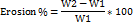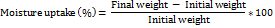 where W1 is the initial weight, and W2 is the post-immersion weight.