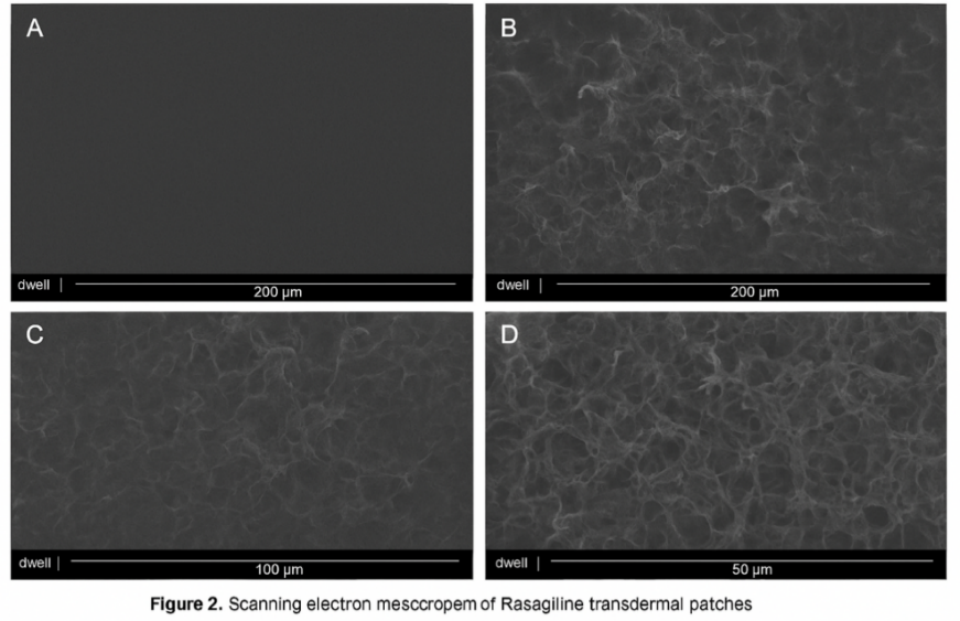 All prepared polymeric rasagiline patches were examined visually for surface smoothness, flexibility, brittleness, stickiness, transparency, and uniformity. Any visible imperfections, such as cracks, bubbles, or uneven surfaces were noted.