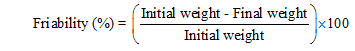 According to pharmacopeial standards, friability values less than 1% are considered acceptable. All measurements were performed in triplicate (n = 3) to ensure reproducibility [43, 44].