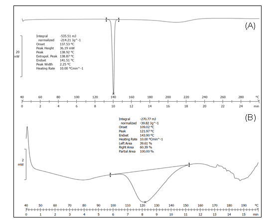Differential scanning calorimetry (DSC) characterized the thermal behavior of pure Ticagrelor, the individual hydrotropes, their physical mixture, and the solid dispersions (DSC 8000, PerkinElmer, Waltham, USA). Accurately weighed samples (3–5 mg) were sealed in standard aluminum pans and scanned from 30 to 200 °C at 10 °C/min under nitrogen (20 ml/min); an empty sealed pan served as the reference. Thermograms were examined for melting endotherms, glass-transition events (Tg), and any signs of drug–excipient interaction. All measurements were performed in triplicate (n = 3) to confirm repeatability [25].