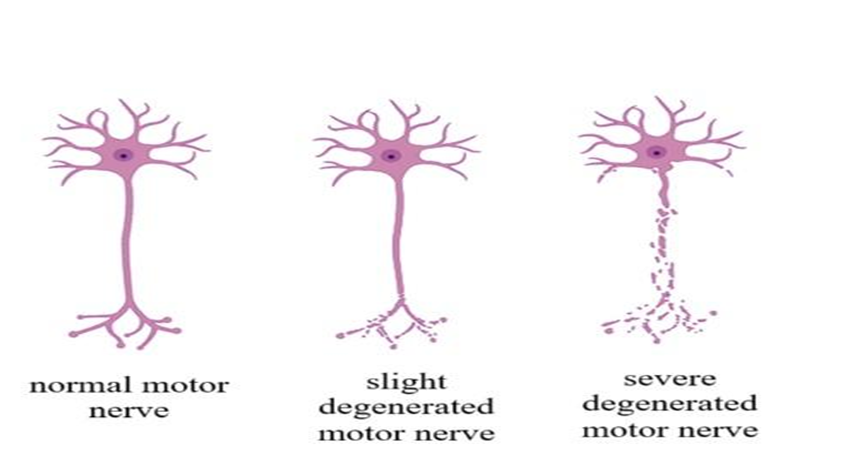 Fig. 1: Normal motor nerve, slightly degenerated motor nerve, severely degenerated motor nerve. (made with BioRender)