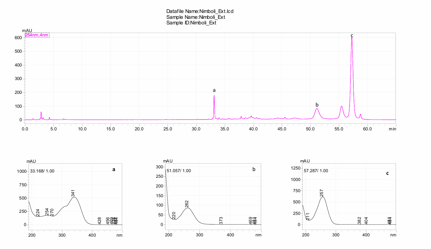 Fig. 3: HPLC chromatogram of Melia azedarach fruit extract