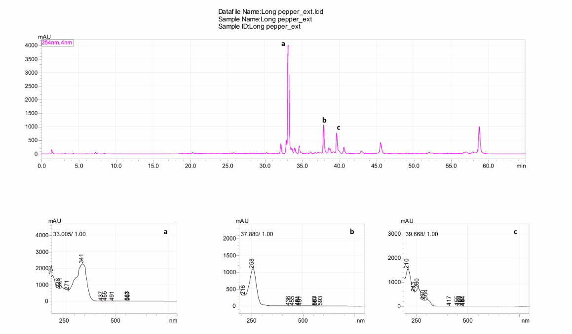 Fig. 4: HPLC chromatogram of Piper longum fruit extract