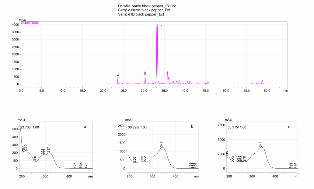 Fig. 5: HPLC chromatogram of Piper nigrum fruit extract
