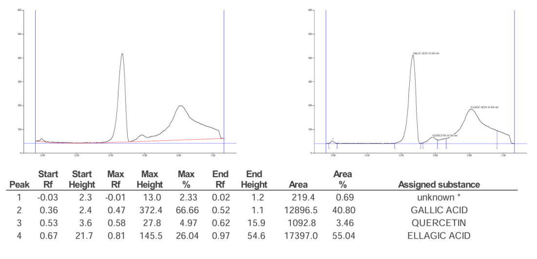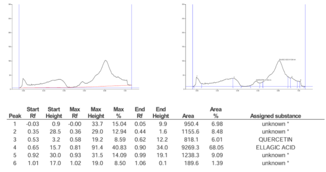 | Ellagic acid | 4,088 | 13% | 1.3 mg/g |