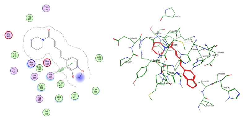 | 9 | Mimosine (Standard) | O1 | O–Arg424(B) | H-donor | 2.88 | –0.6 | –5.8737283 | 0.52034706 |