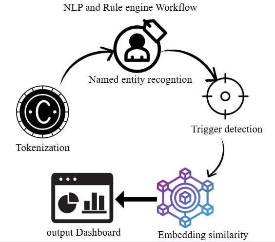 Fig. 2: Natural language processing (NLP) workflow for named entity recognition, embedding generation, and severity classification