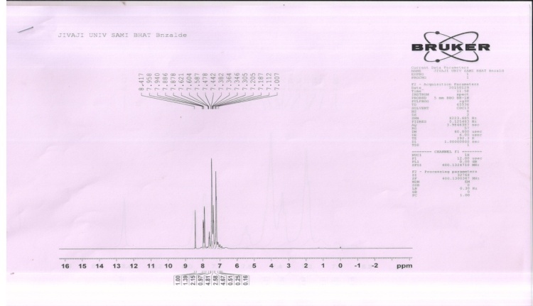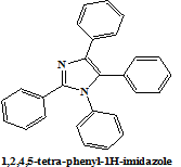 Entry 1: 1, 2, 4, 5-Tetraphenyl-1H-imidazole (C27H20N2) White powder; m. p. 210–2150c FT-IR (KBr): υmax (in Cm−1) 3058 (C-H aromatic), 1589 (C=C aromatic), 1448 (C=N) 1H NMR (400 MHz, CDCl3): δ (ppm) 7.11–7.58 (m, 20H, H–Ar) (fig. 3-4)