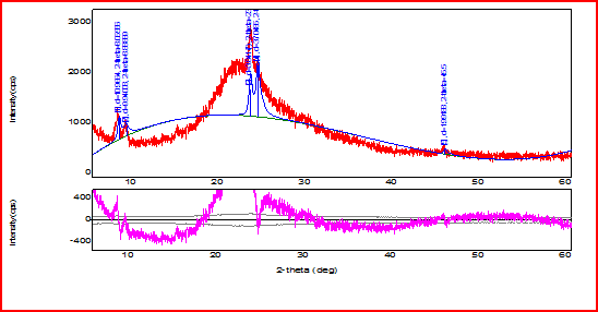 For X-ray diffraction analysis, the samples were placed in aluminum sample holder equipment. Copper Kα radiation at the speed of 20/min gives 2θ range scanning from 0 ° to 60 °. The only d-spacing of interest in X-ray patterns were the basal spacing’s along c axis.