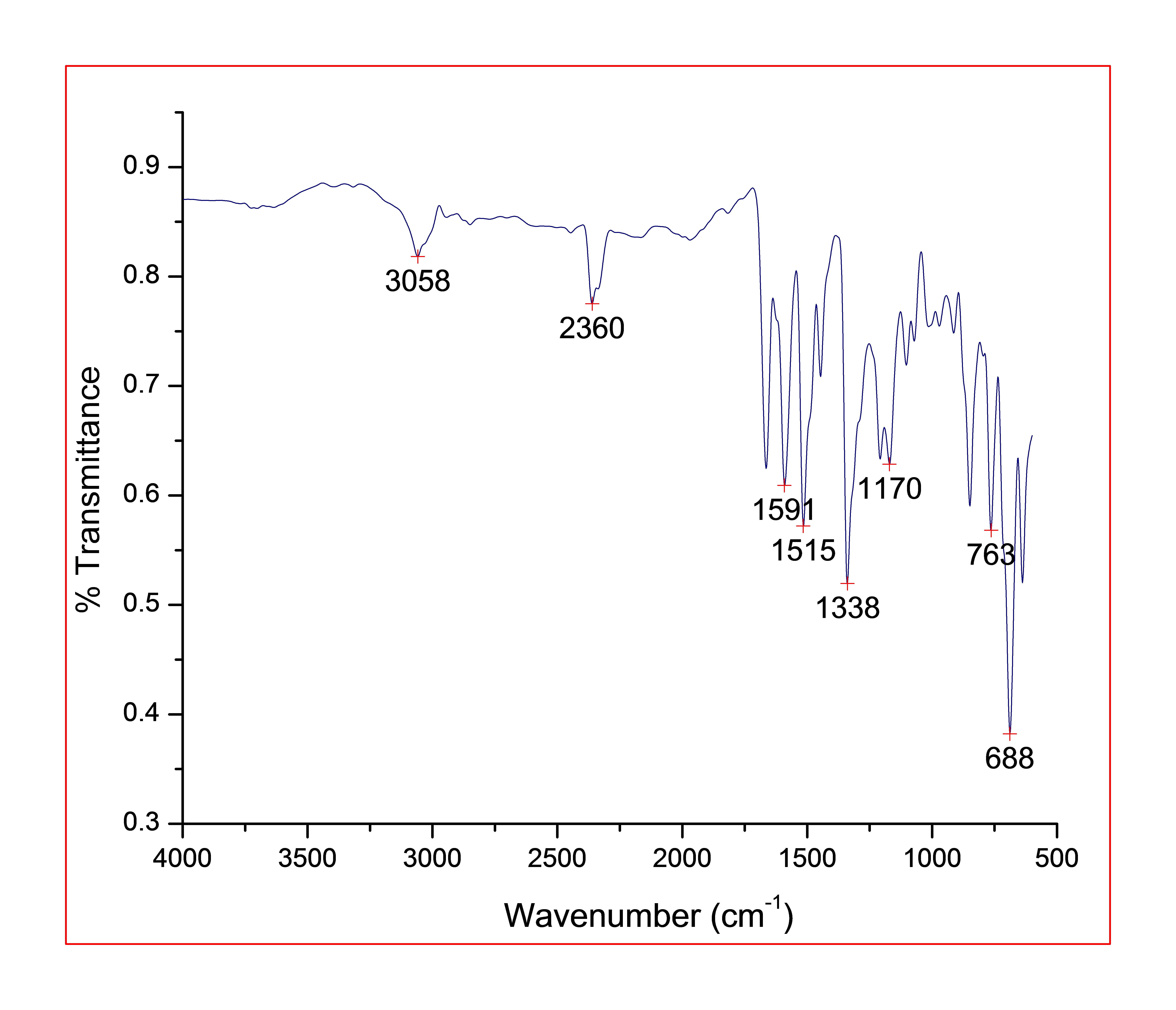 Fig. 7: FTIR spectrum of 2-(4-nitrophenyl) 1, 4, 5-triphenyl 1H-imidazole