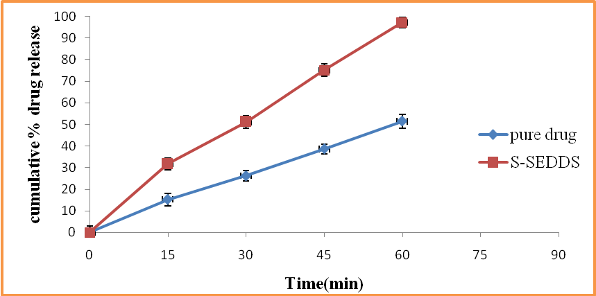 | Time(min) | Pure drug (% release) | S-SEDDS (% release) |