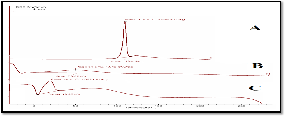 Fig. 3: DSC thermograms of A) ramipril B) sylysia and C) S-SEDDS