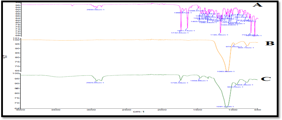 Fig. 5: FT-IR spectra of A) ramipril B) sylysia and C) S-SEDDS