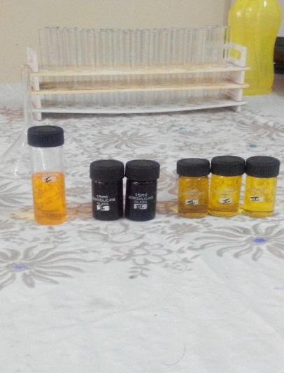 Fig. 6: Phytochemical screening of petroleum ether extract (test tubes are arranged as mentioned in the table)