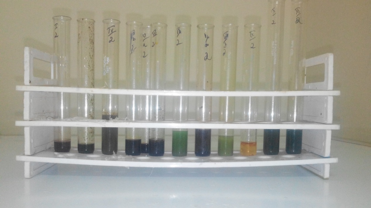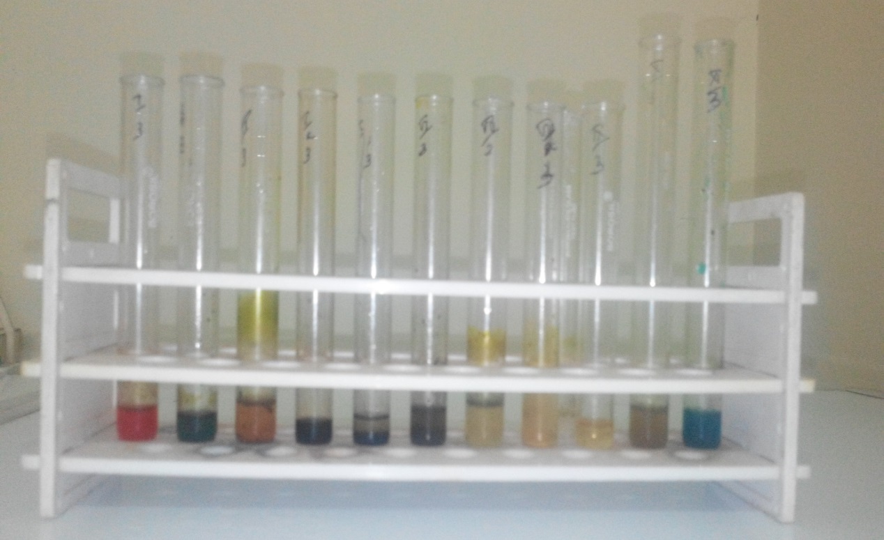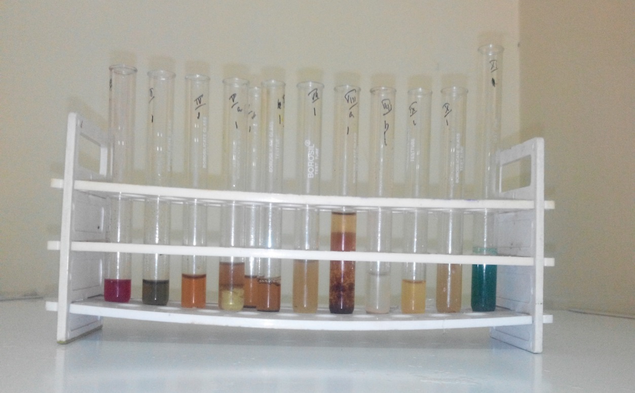 Fig. 7: Phytochemical screening of aqueous extract (test tubes are arranged as in the table)