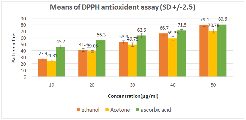 Fig. 1: DPPH Scavenging assay of ethanol and acetone extracts of C. amada leaf, compared to ascorbic acid
