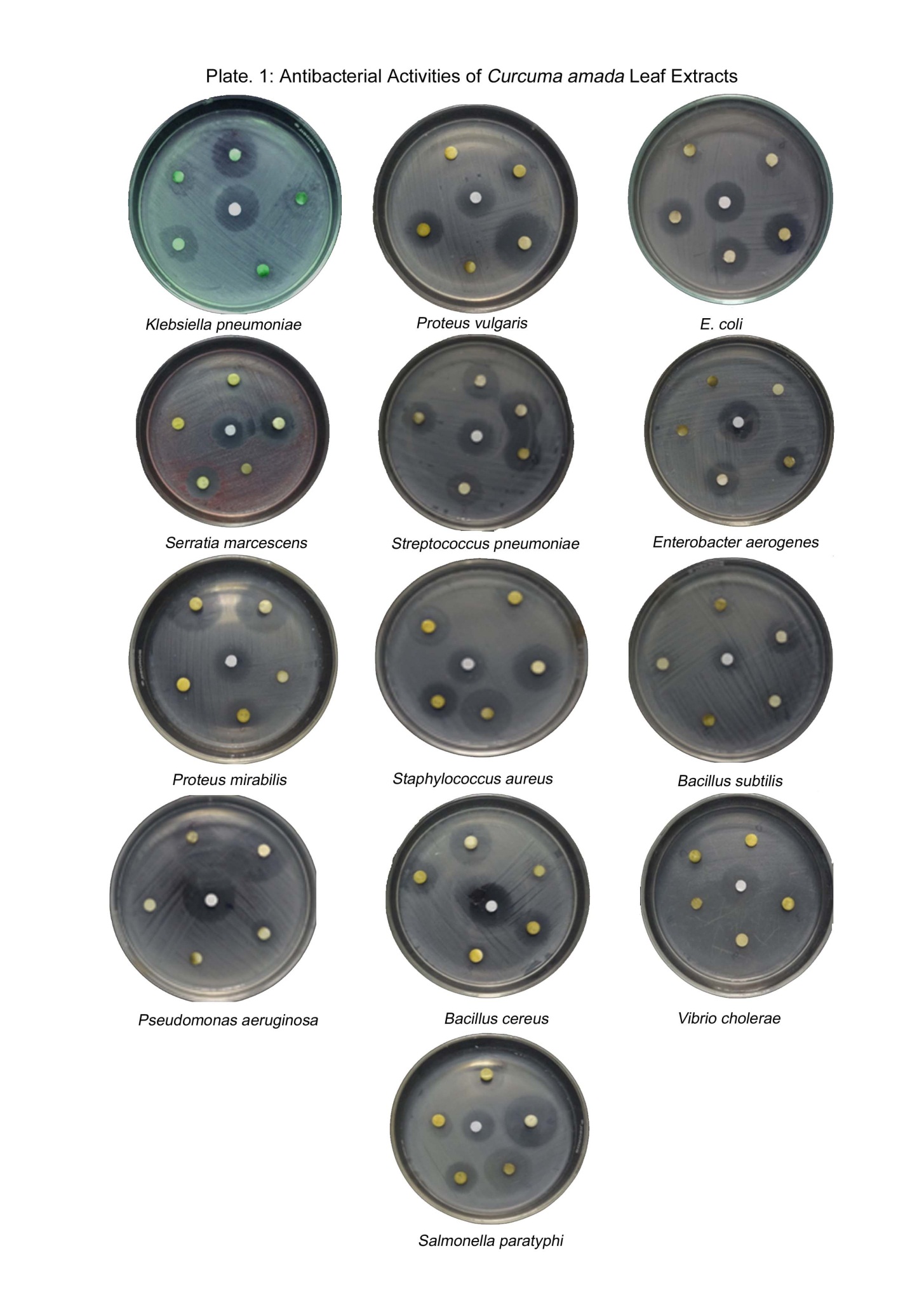 Plate 1: Antibacterial activities of Curcuma amada leaf extracts