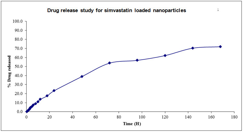 The In vitro drug release study was performed at pH 7.4 to simulate the In vivo condition of plasma. The drug release profile of Simvastatin from NPs is shown in fig. 5.
