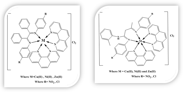 Finding of newer and more potent analogs of molecules with already established activities form a key part of research in the pharmaceutical field. In chemotherapy, the extensive applications have been found to be transition metal ions coordinated to a nitrogen containing ligands, such as 1,10–phenanthroline and/or 2,2'–bipyridine. There are several biologically active molecules which contain various heteroatoms such as nitrogen, sulphur and oxygen, for perpetuity drawn the attention of chemist over the years mainly because of their biological consequence. The ligands (1,10–phenanthroline and 2,2'–bipyridine) are sturdy field bidentate ligands that form very stable chelates with many first-row transition metals [4].